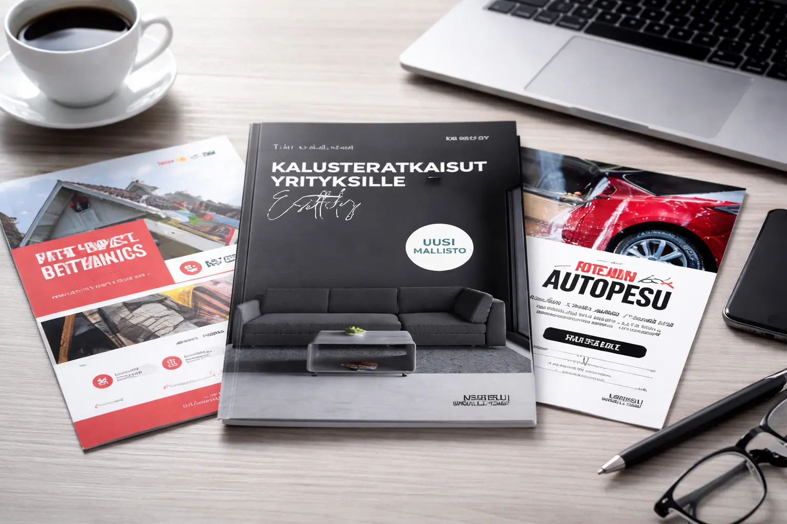 Suunnittelen esitteitä ja markkinointimateriaaleja, jotka näyttävät hyvältä ja toimivat käytännössä – messuilla, myynnissä ja verkossa.
