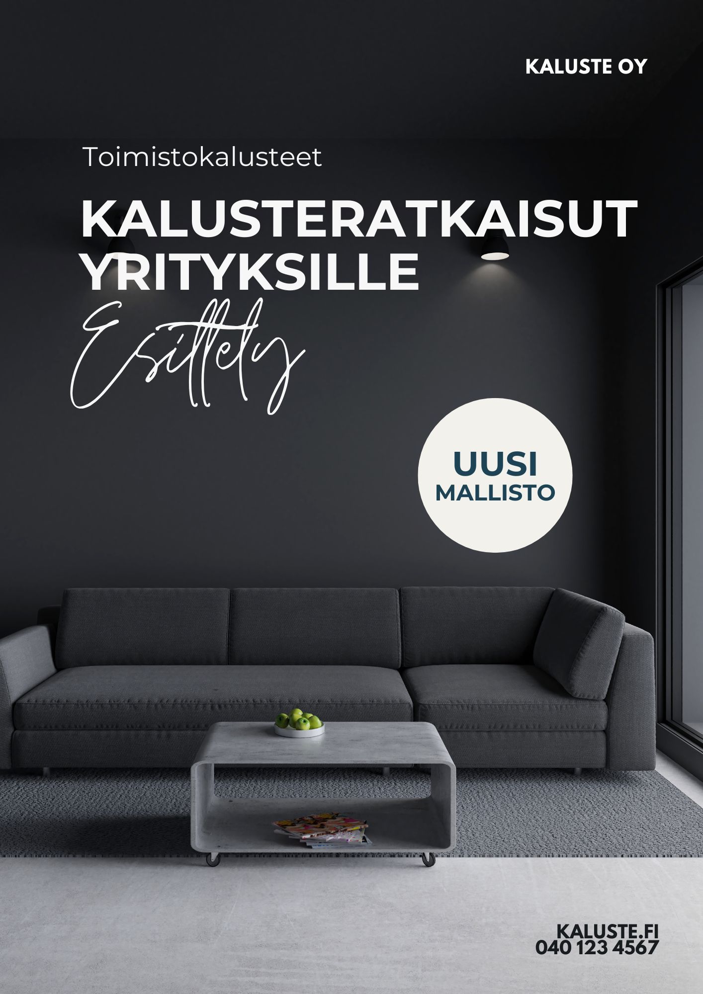 Yritysesite kalusteratkaisuista, moderni ja selkeä esite yritysmyyntiin